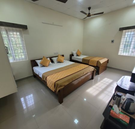 Guests can enjoy modern amenities, air conditioning, and easy access to resort facilities, making it suitable for families, couples, or small groups. With a focus on comfort, practicality, and a peaceful stay, this room offers a perfect retreat for travelers seeking both relaxation and accessibility during their visit to Dragon Resort, Kodaikanal.