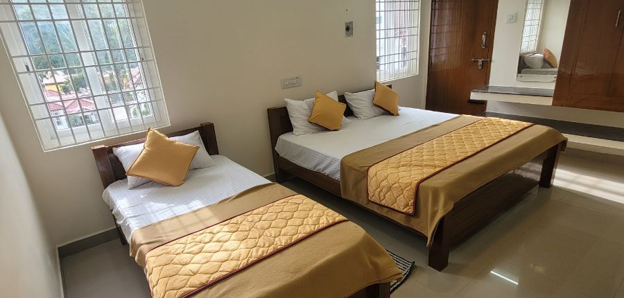 Step into a sanctuary of comfort and elegance in our beautifully appointed room. Designed for both relaxation and convenience, it features a spacious king bed with an additional mattress available for extra flexibility, making it ideal for couples, families, or solo travelers. Enjoy the breathtaking terrace view from your private balcony, where mornings come alive with fresh air and serene surroundings.