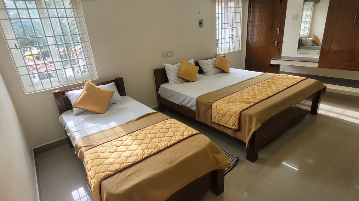 Guests can enjoy modern amenities, air conditioning, and easy access to resort facilities, making it suitable for families, couples, or small groups. With a focus on comfort, practicality, and a peaceful stay, this room offers a perfect retreat for travelers seeking both relaxation and accessibility during their visit to Dragon Resort, Kodaikanal.